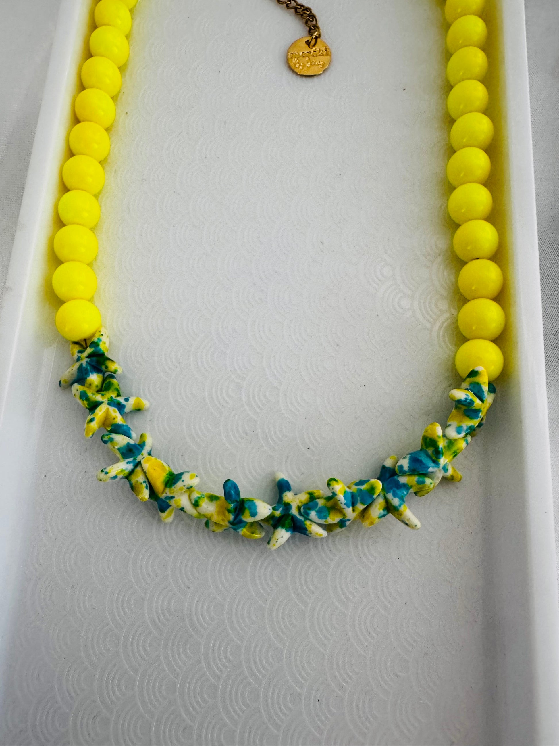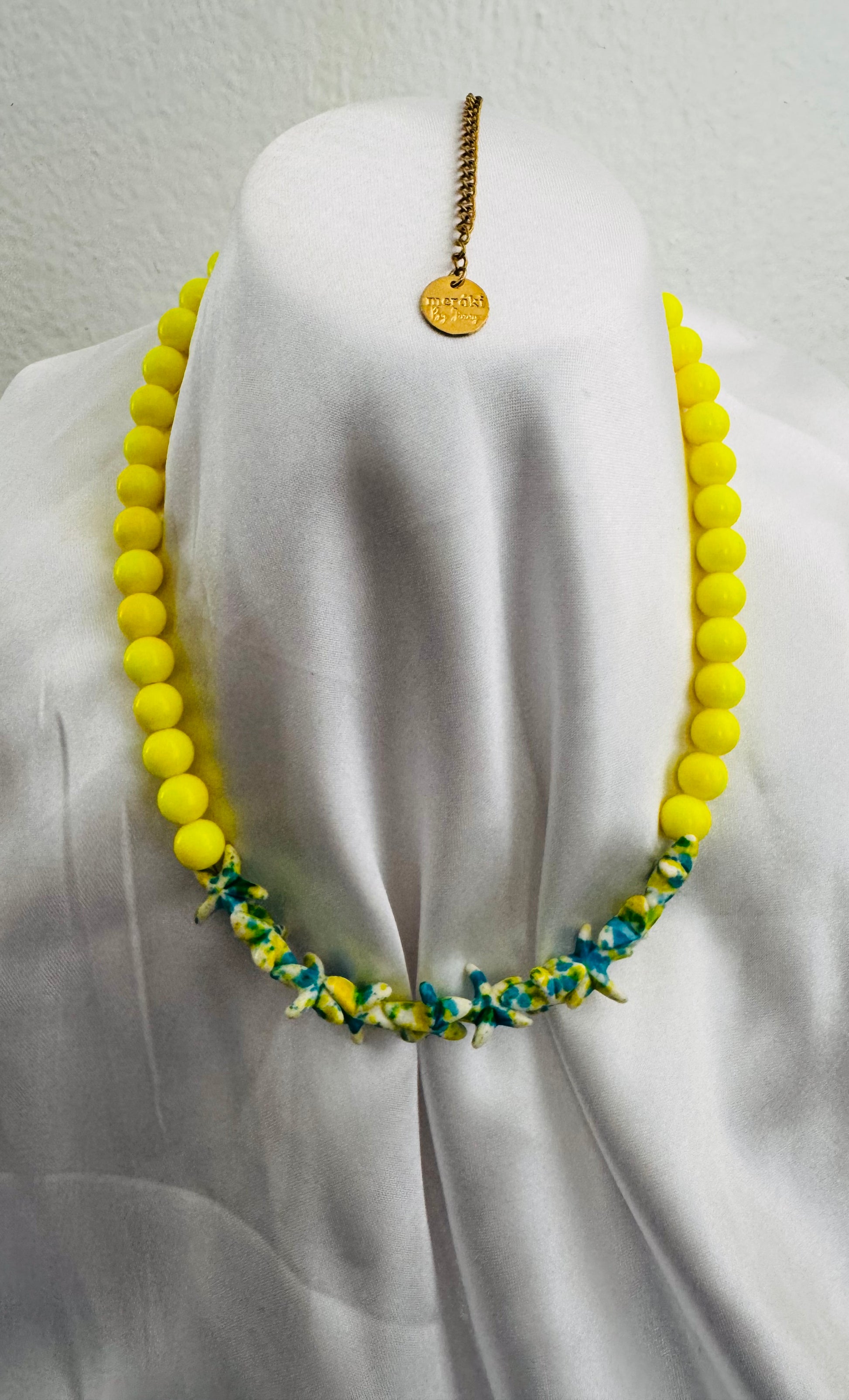 Un diseño que captura la alegría del verano y la magia del mar en cada detalle. Su energía vibrante ilumina cualquier look y te invita a brillar con un estilo tropical y auténtico. Mide 14” + 3” de extensor. Pieza única.